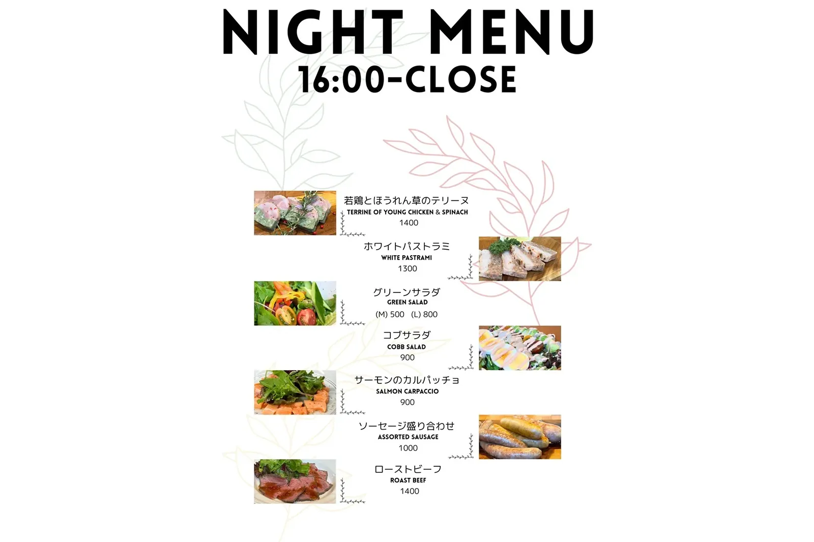 Dinner 11:00 am – 21:00 pm [ LO. 20:00 pm ]