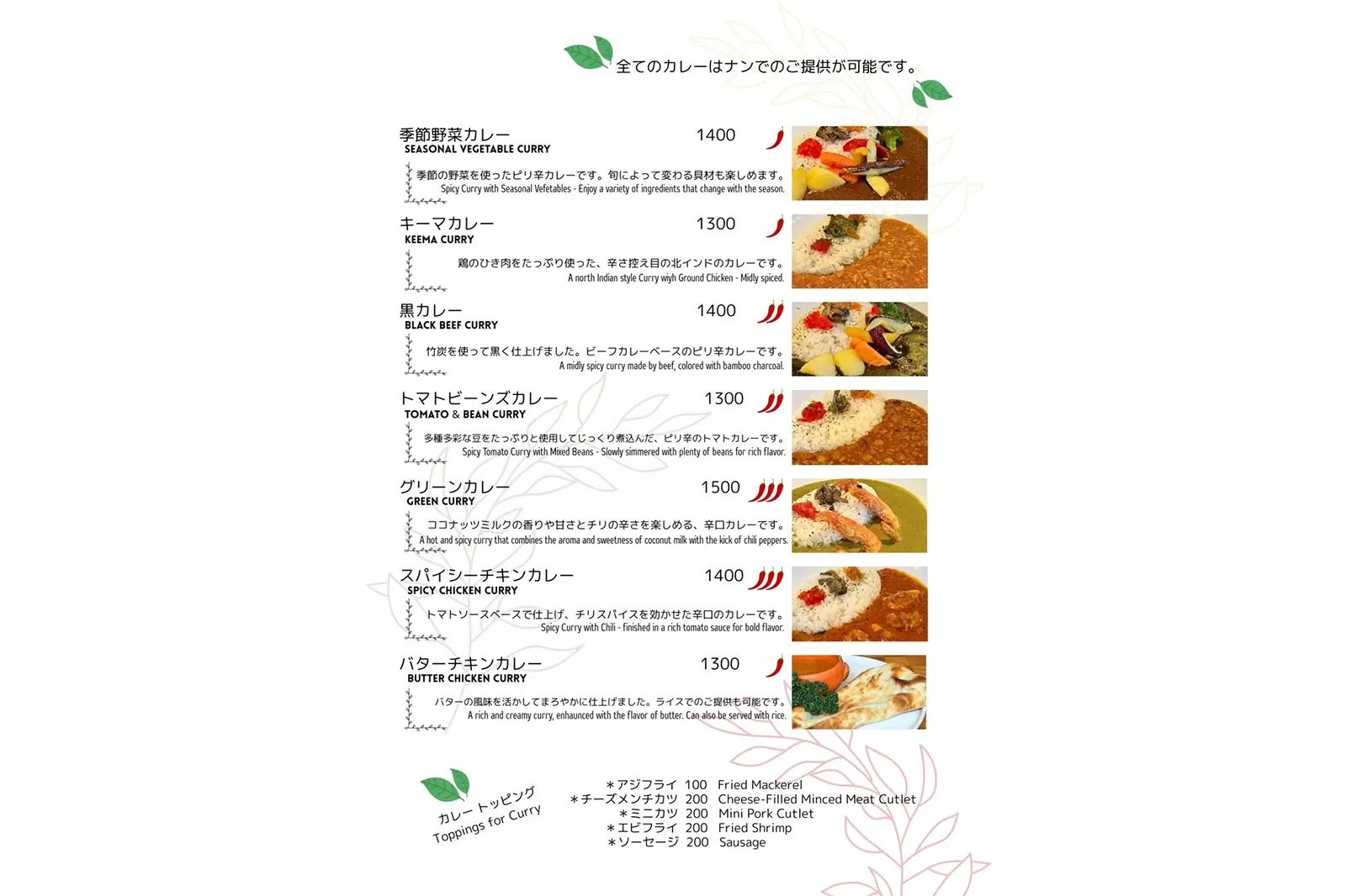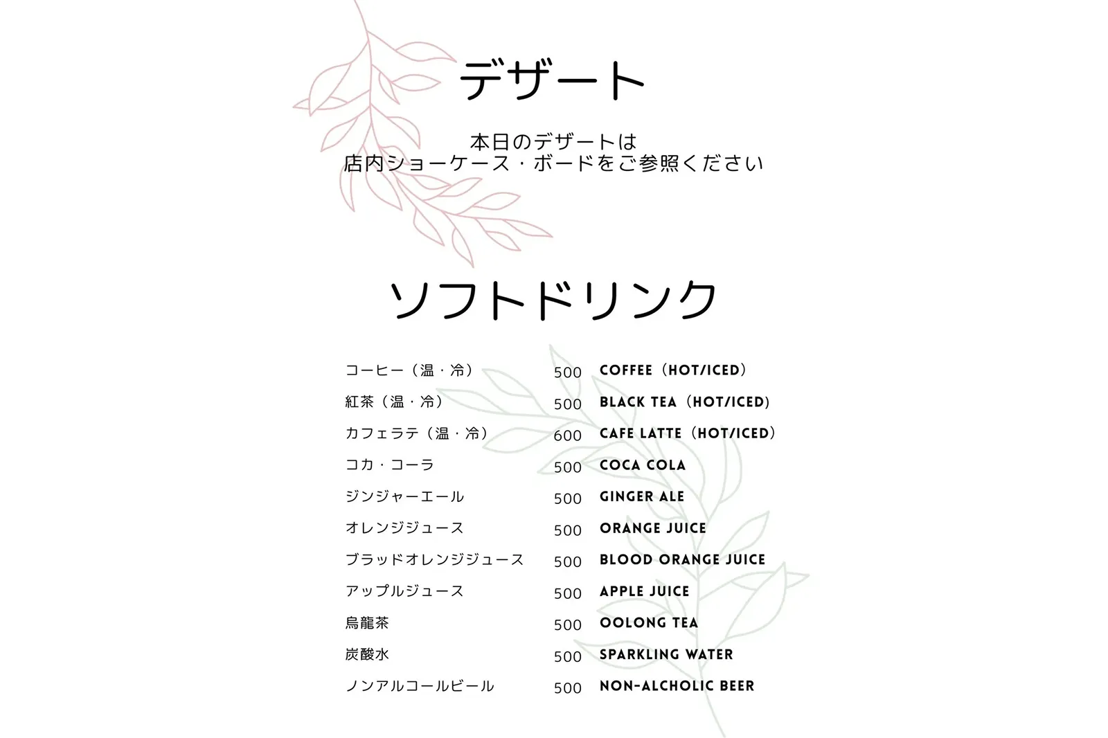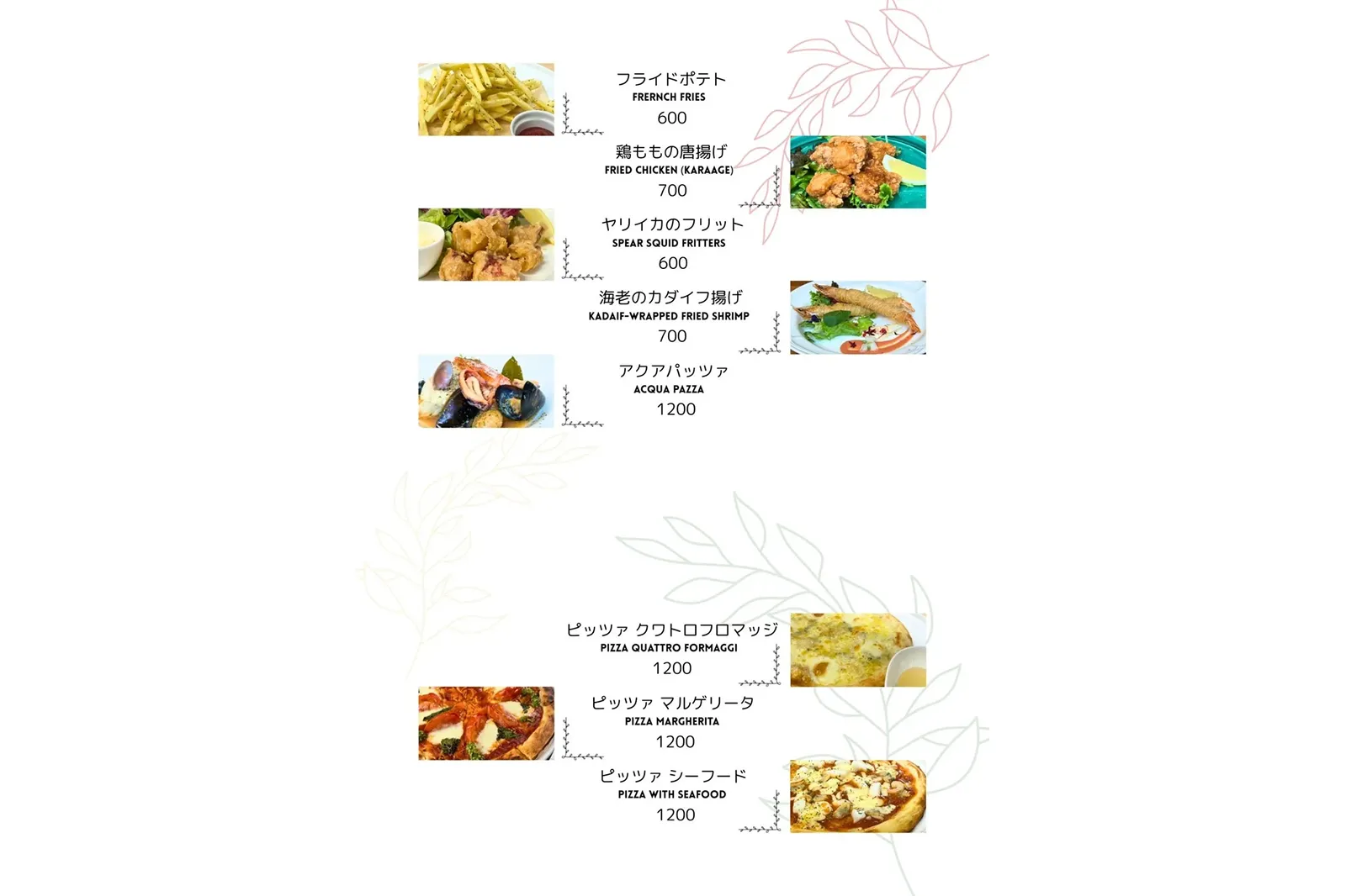 ※メニュー内容は季節やその日の仕入れ状況により変更する場合がございます。